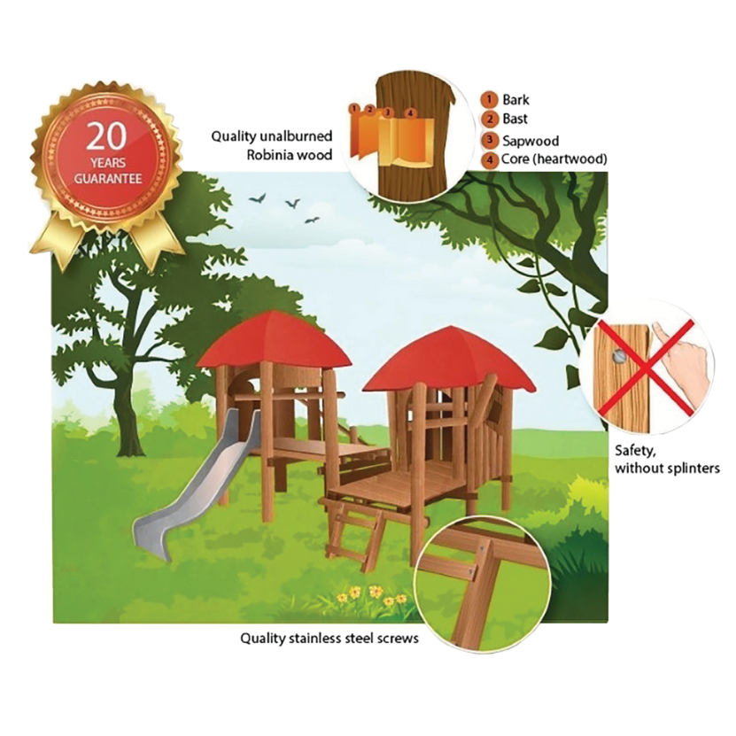בטיחות – בתכנון אנו שמים דגש גם על מיקום בטוח של המתקנים בגן. לדוגמא את הנדנדה נמקם בתוך